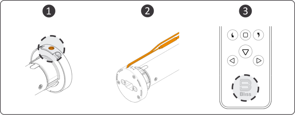 - Pidä painiketta, kunnes LED vilkkuu vihreänä, sitten paina 3 kertaa → moottori pitää äänen