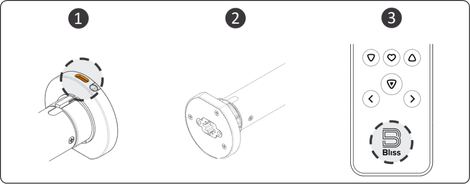- Além disso, para um motor tubular (com interruptor de ligar/desligar): desligue o interruptor, aguarde 1 minuto e, em seguida, volte a ligá-lo